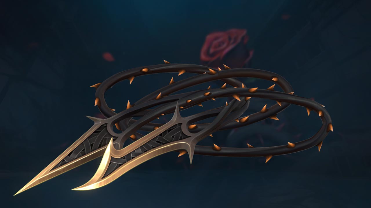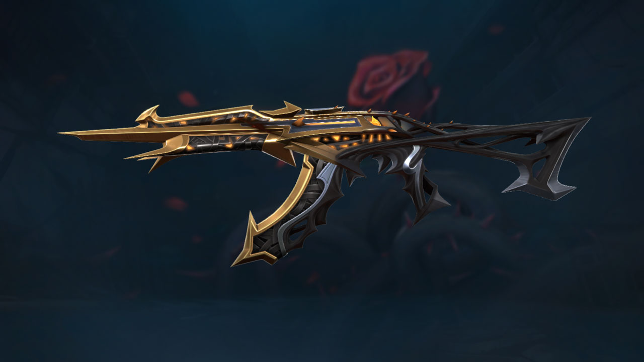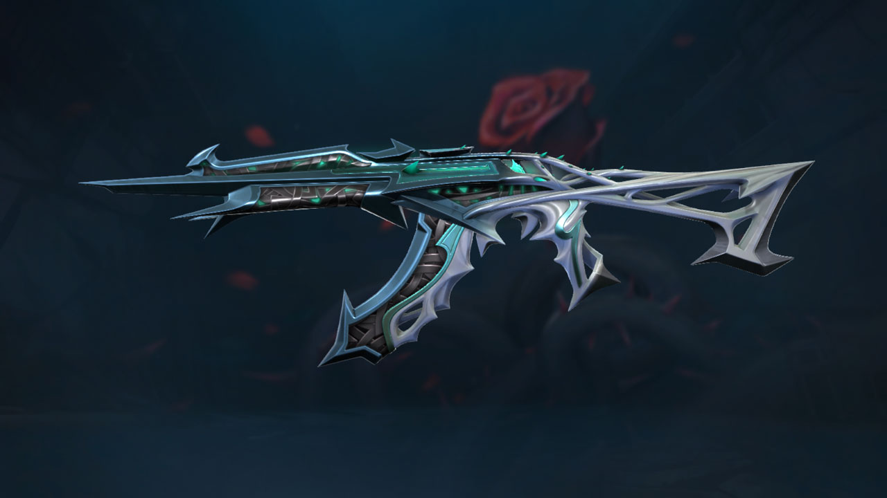 The new Blackthorn skins are coming to the store. This set has a very rock metal and floral style to it. The weapons included in this bundle are the Classic, Guardian, Vandal, Marshal and melee vine blades. The weapons are coloured in silver, black and red. These weapons include SFX, animations and finisher upgrades. Each weapon comes in 3 variants: Gold, blue and purple.