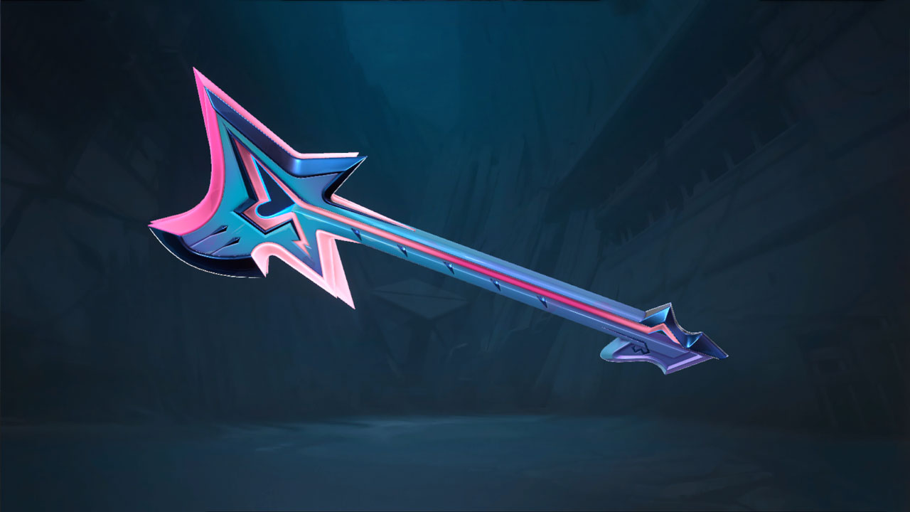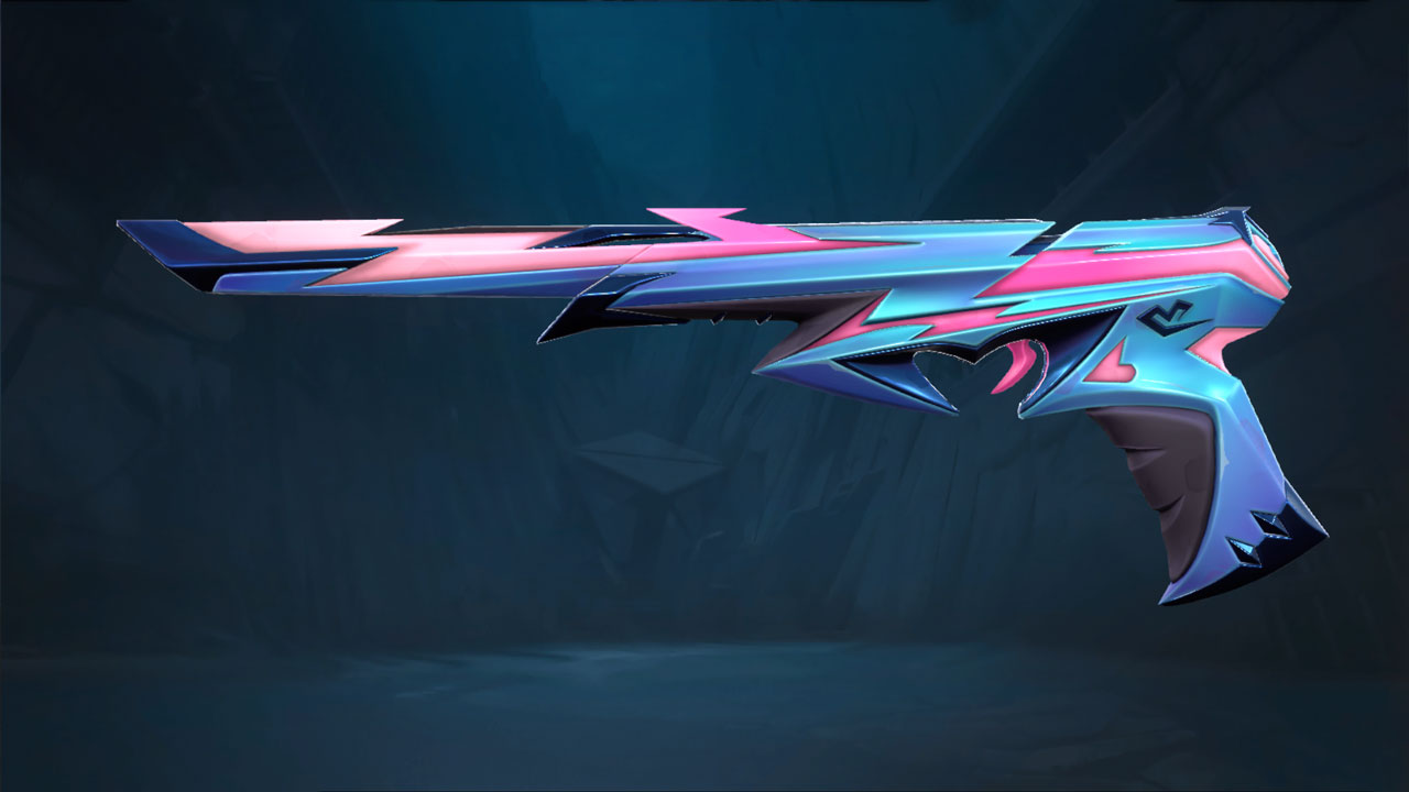 The new Valorant Heartstopper set consists of 3 skins, each with two variants in black and blue (with the main set in purple). Joining the sword melee are the Ghost and Vandal.