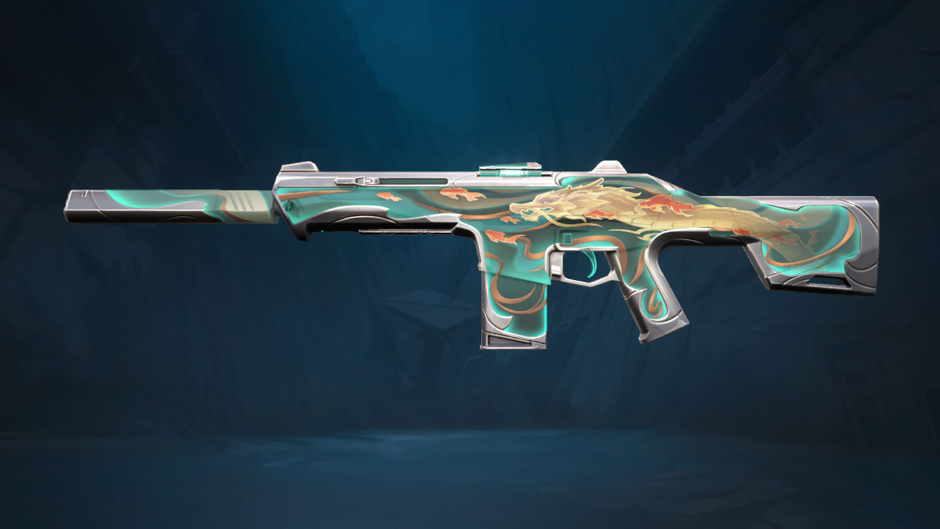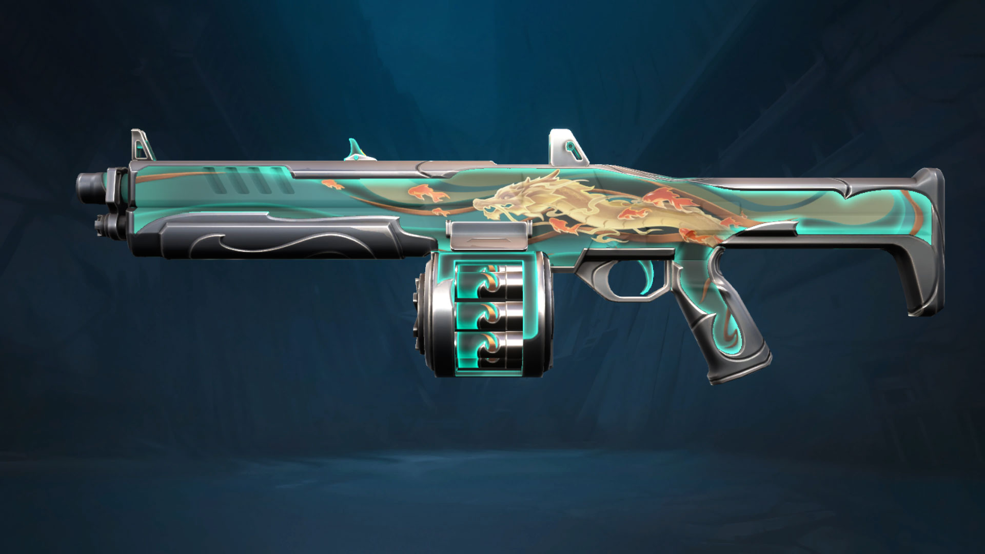 The Dragon Gate set features a Shorty, Judge, Phantom and Ares. There is a lot of oriental artwork in Valorant, and this jade set with gold dragon and orange fish will go nicely with any existing Asian style sets. The skins come in jade green, silver grips and gold and orange art.