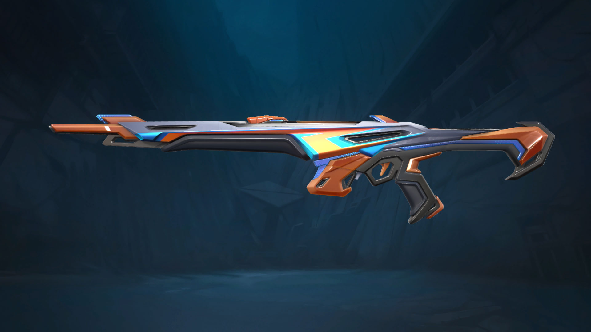 The new Valorant Paceline set of five comes with a melee knife, Frenzy, Stinger, Guardian and Vandal. The guns have cool sporty designed weapon models, but sadly the skins don’t have any variants or custom animations or VFX. This set is for those athletic players that want to go fast. Its colours are orange and grey with black grips and blue highlights.